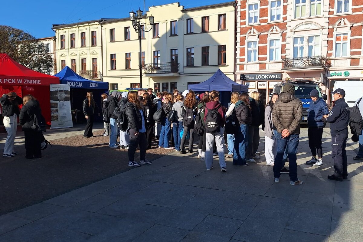 Na żnińskim rynku odbyło się wyjątkowe wydarzenie przygotowane przez funkcjonariuszy z Komendy Powiatowej Policji w Żninie. „Dzień otwarty” był okazją do poznania specyfiki policyjnej służby, rozmów z mundurowymi oraz obejrzenia z bliska sprzętu wykorzystywanego w ich codziennej pracy. Spotkaniu towarzyszyła także akcja krwiodawcza „Spokrewnieni służbą”, zorganizowana dla uczczenia pamięci zmarłej komisarz Wiolety Burzych.