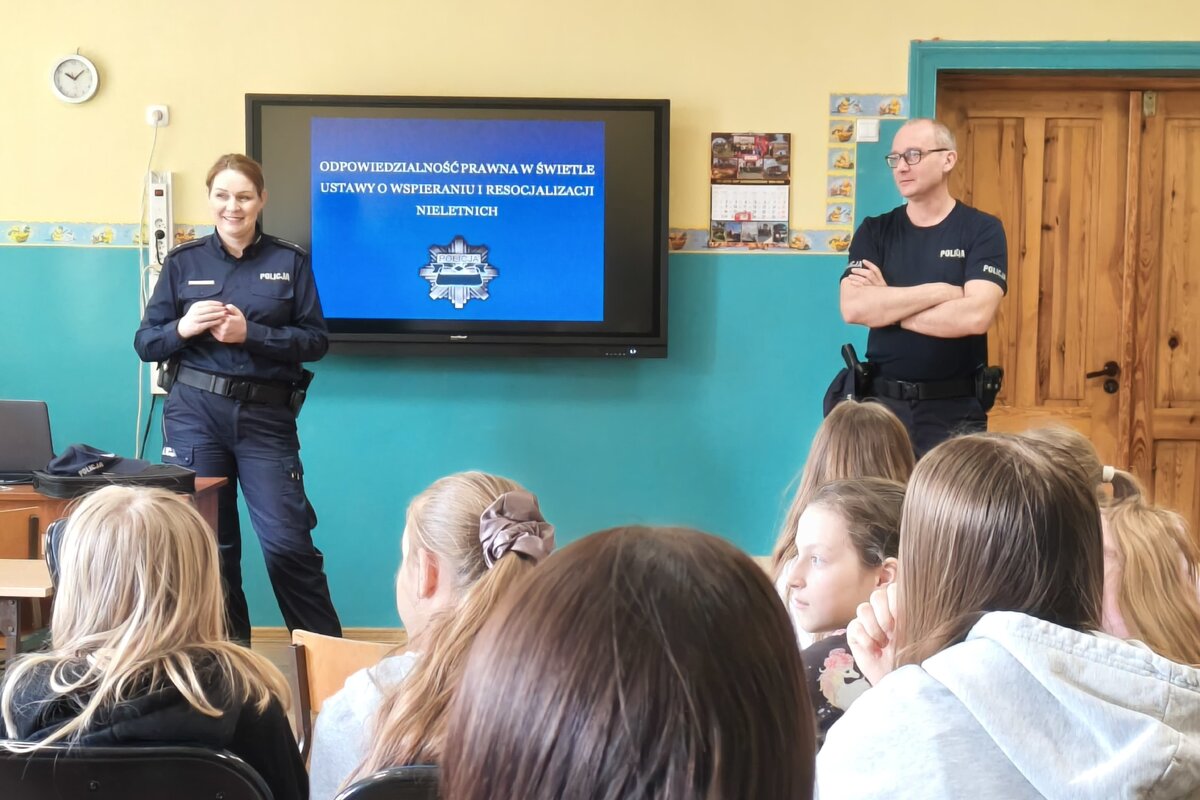 Istotnym elementem zajęć była również tematyka odpowiedzialności prawnej nieletnich. Policjanci zapoznali uczniów z pojęciem czynu karalnego oraz jego konsekwencjami. Wyjaśnili, jakie zachowania mogą stanowić naruszenie prawa oraz jakie środki mogą zostać zastosowane wobec osób nieletnich dopuszczających się takich czynów.